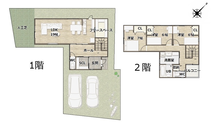 全居室にクローゼットもしくは押入があり、土間リビング、LDK、2階廊下にも収納スペースを配置しているのでお片付けには困りません。